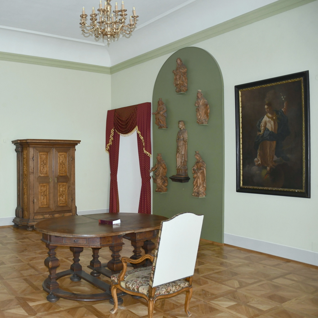 V letošním roce si připomeneme 30 let od slavnostního otevření expozic starého a moderního umění v barokní radnici. Budova po dlouholeté generální rekonstrukci zazářila na náměstí jako drahokam a překvapila i rozsáhlými a kvalitními sbírkami. V duchu dobové estetiky byly všechny prostory bíle vymalovány, ale čas šel dál. Od loňského roku probíhají v 1. patře barevné výmalby interiérů, doplňování textilních prvků, obnova původních podlah a nový způsob instalace exponátů, včetně využití historického nábytku. Pozornost přitahuje nejenom barokní kaple, ale i nově obnovená gotická kaple ukrytá ve věži. V 1. patře je představeno staré umění včetně evropsky proslulé obrazárny hrabat z Hohenemsu a ve 2. patře moderní umění ­– počínaje krajináři Vysočiny a konče nejnovějšími díly současnosti.